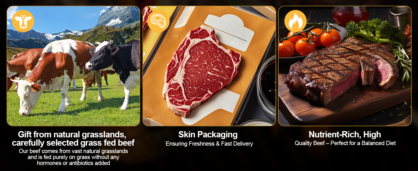 Whether pan-seared, grilled, or slow-cooked, the steak keeps its natural tenderness and aroma, filling your kitchen with mouthwatering fragrance. From pasture to plate, every step — from careful butchering to cooking — is crafted to deliver a restaurant-quality experience at home . Every slice, every bite, is a celebration of premium beef, texture, and taste.